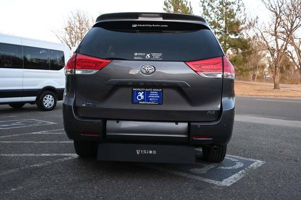 Door Opening Height: 55" and ramp Width: 32". 2014 Toyota Sienna XLE Braunability Vision Long Channel Power Rear Entry van for sale. An excellent BraunAbility Vision conversion with: 32in wide power ramp ramp, open the liftgate and ramp with one button on the remote, seat up to two wheelchair passengers comfortably with fixed middle row jump seats. 55in tall door opening, and 1,000lb load ramp capacity, also includes L-Track Q'Straint wheelchair restraint system. There are a couple of small scratches in the paint consistent with the vehicle age. This Sienna XLE comes packed with Toyota's newest safety features like Daytime Running Lights, and includes: beautiful Gray exterior, gray leather interior, Alloy Wheels, tires have 80% tread life left, 3-Zone Climate Control, AM/FM/CD/Satellite system, AUX port, power windows, mirrors, and locks, keyless remote, moon roof, cruise control, traction control, stability control, 4-wheel ABS system, smooth and efficient 3.5L 6-cylinder Toyota motor with front wheel drive, and much more. This vehicle is offered for sale by Mobility Auto Group. With two Colorado locations at: 1500 W Campus Drive, Littleton CO 80120 & 2311 S Platte River Drive, Denver CO 80223. We don't charge a Dealer Handling Fee and are your mobility one-stop-shop. Just give us a call as we offer it all: sales, service, parts, and rentals. Open M-F 9am - 6pm. Sat by appt. Call (844) 289-2635.