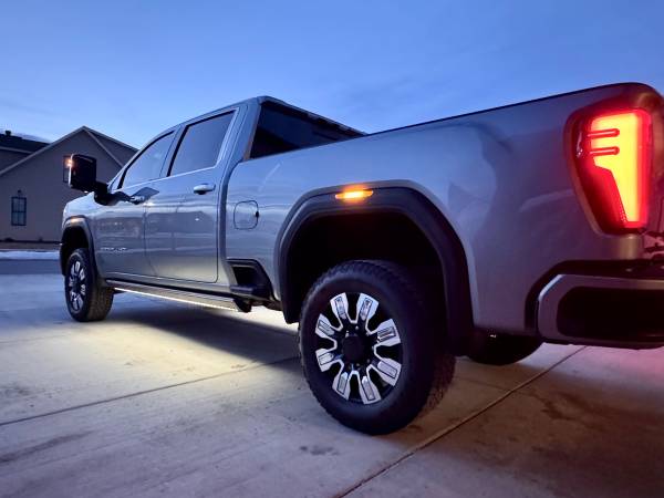 * Turn Signal In Mirrors. Power Folding Mirrors, Sunroof, Automatic Running Boards with LED Lighting, Tinted windows, Spray Liner, Tow package, and folding hard top tonneau cover. Original new tires put on truck, and have roughly 345 miles on them. Brand new windshield installed a week ago.