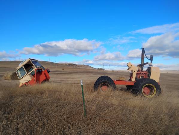 Transmission and drive unit are out and partially missing to be repaired but never got to it. Engine is good, tires are ok. Broken side glass in cab.
