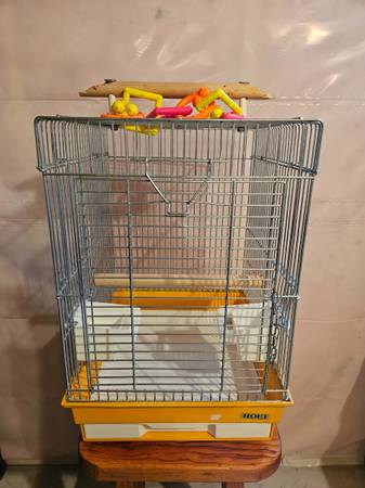14" X 16" X 20.5" H 1/2" Wire Spacing, Medium gauge wire Great for Small Parrots/Cockatoos Ex Large fold down door 2 food dishes Good condition Cash and Carry only